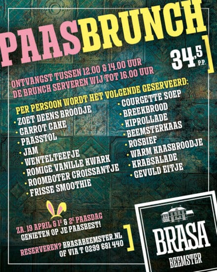 Genieten op je Paasbest bij BRASA Beemster van een heerlijke paasbrunch op zaterdag 19 april, 1e of 2e Paasdag!